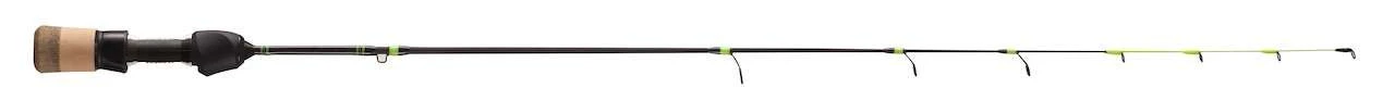 A strong staple in the lineup, the 13 Fishing Tickle Stick Rods are born again along with new tech. These rods utilize an industries first flat tip ice rod which assists anglers with detecting ascending and descending strikes. Extreme blank rigidity is also gained with this construction, preventing the rod from rolling over which leads to perfect hooksets. A Hi-Vis tip allows for visible bite detection, and its custom evolve reel seat locks reels down and provides for great comfort in hand. For the angler looking to elevate their ice season, this redesigned Tickle Stick rod is it!