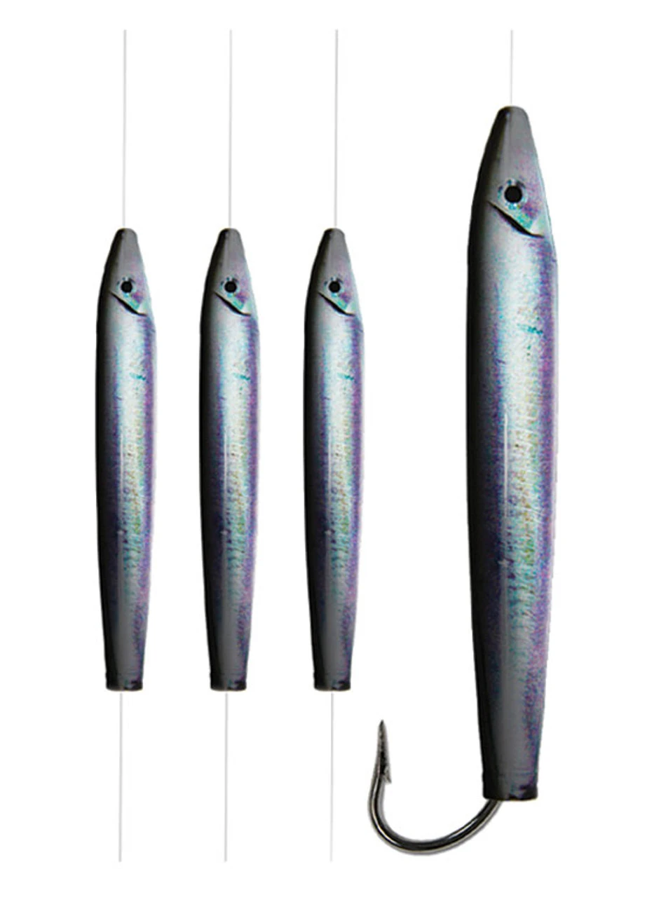 - Rigged with 150lb fluorocarbon leader and 10/0 Mustad hook