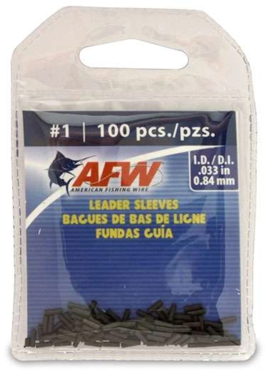 Professional quality leader sleeves are available in a variety of sizes. Burr-free nonabrasive finish combined with high strength and corrosion resistance make American Fishing Wire sleeves the preferred choice of professional leader, lure, and tackle manufacturers.