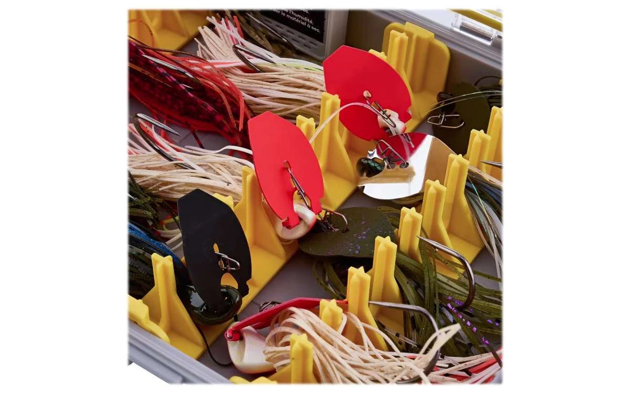 Organizing your jigs & bladed jigs to be readily accessible and secure, the Plano Edge Jig/Bladed Jig Box – 3600 offers a more unique approach to keep your baits ready to use. Individual slots allow jigs and chatterbaits to be stored upright and can be easily adjusted to accommodate the length and size of your baits. Unlike typical storage, your jigs and chatterbaits are not crushed, do not rattle around, and stay in place for easy identification. It’s clear lid allows for content identification, while a simple one hand closure lid closes its Dri-Loc O-Ring seal, preventing moisture, dust and other debris from entering. A moisture wicking tab stays within the box, preventing any moisture accidently let in from causing damage to your baits. An EZ Label sits on the latch of this box, allowing for greater identification when stored latch out.